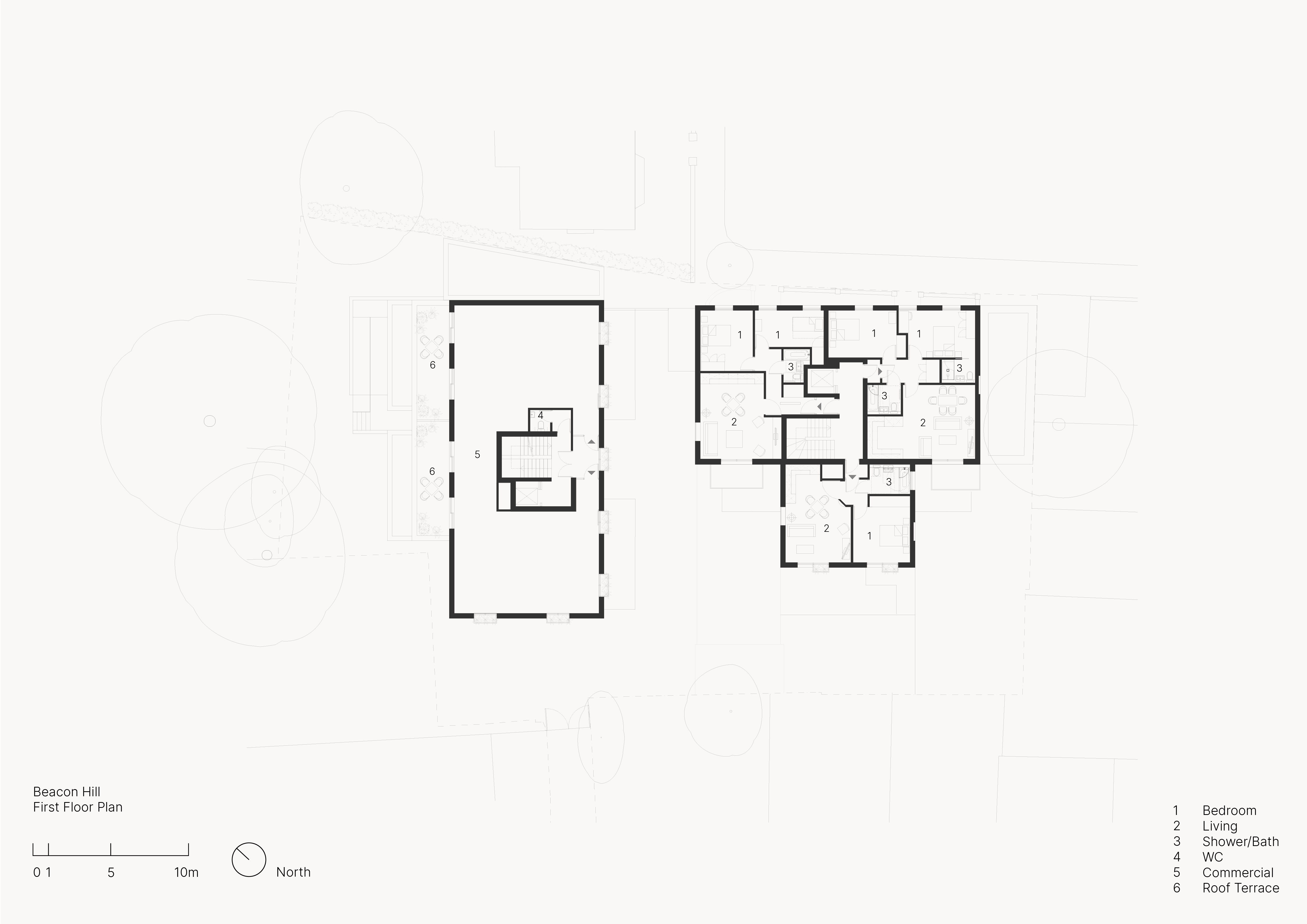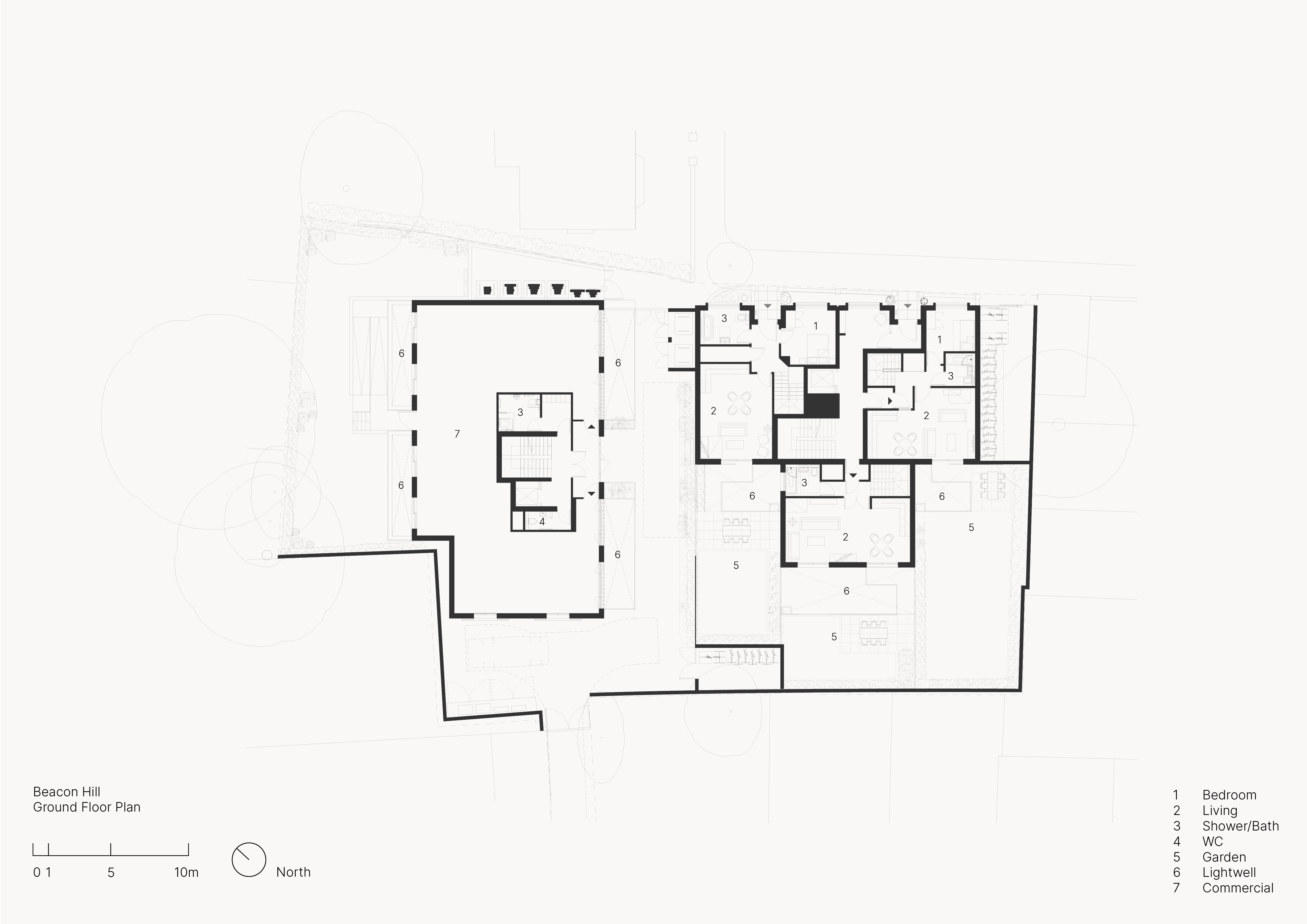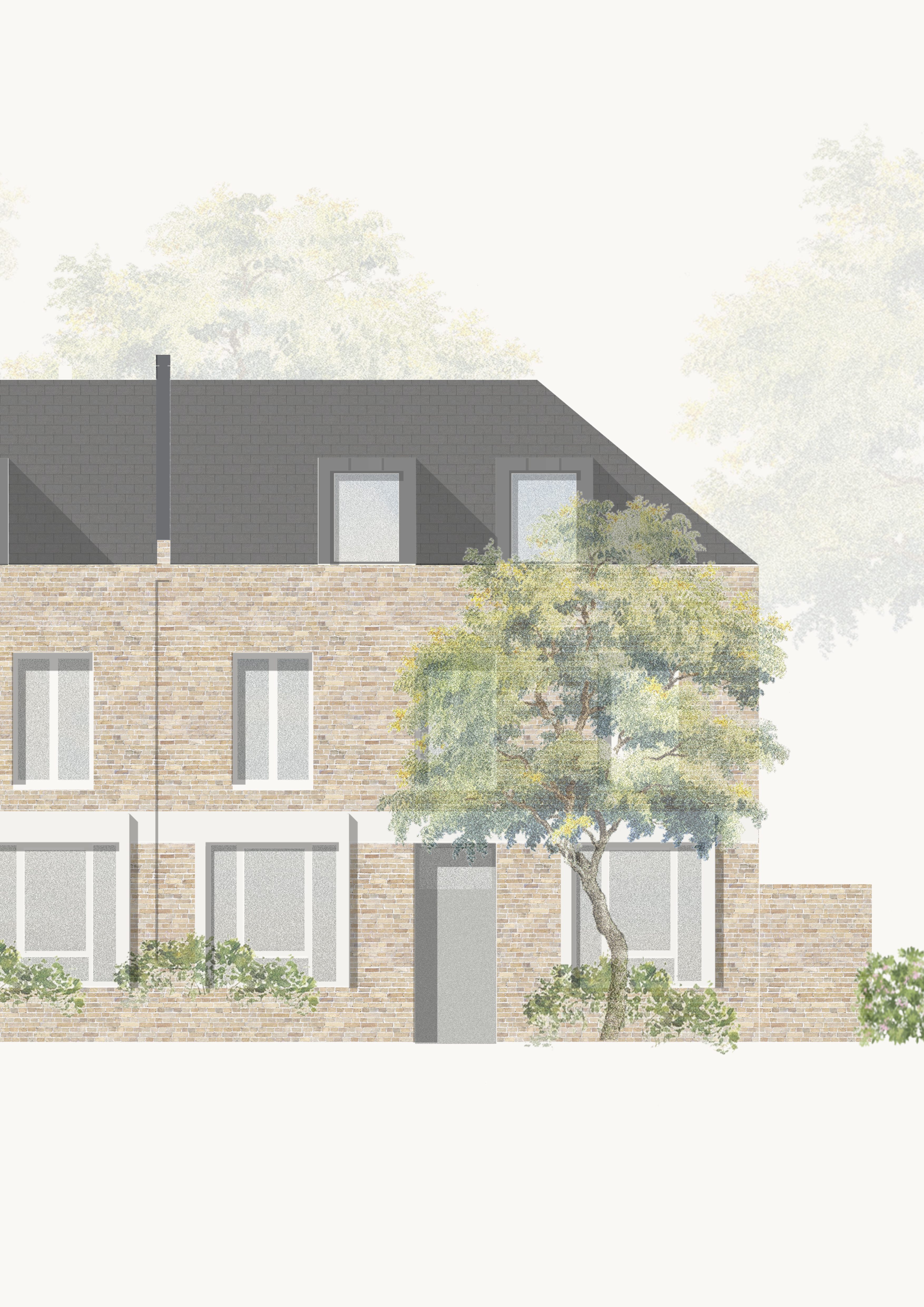Set within the layered fabric of Islington, the proposal reconfigures a modest mixed-use site into seven new dwellings, while retaining a continuity of commercial activity at ground level. The arrangement of the homes seeks to reconcile the domestic and the civic: generous dual and triple-aspect interiors orientated toward light, air, and urban outlook. Externally, the architecture reads as a contemporary echo of its surroundings - a careful reinterpretation of the established streetscape rather than a mimicry of it.