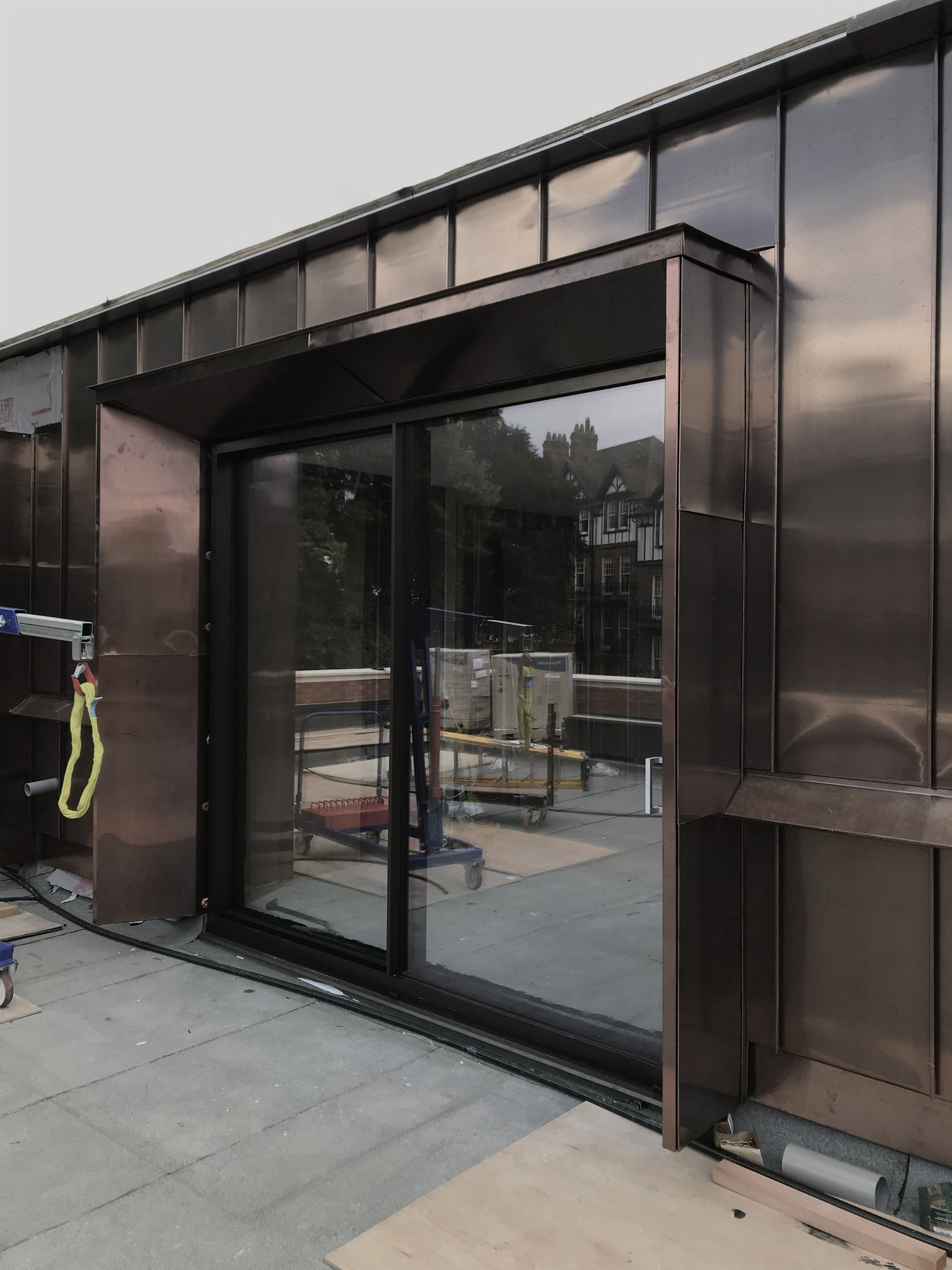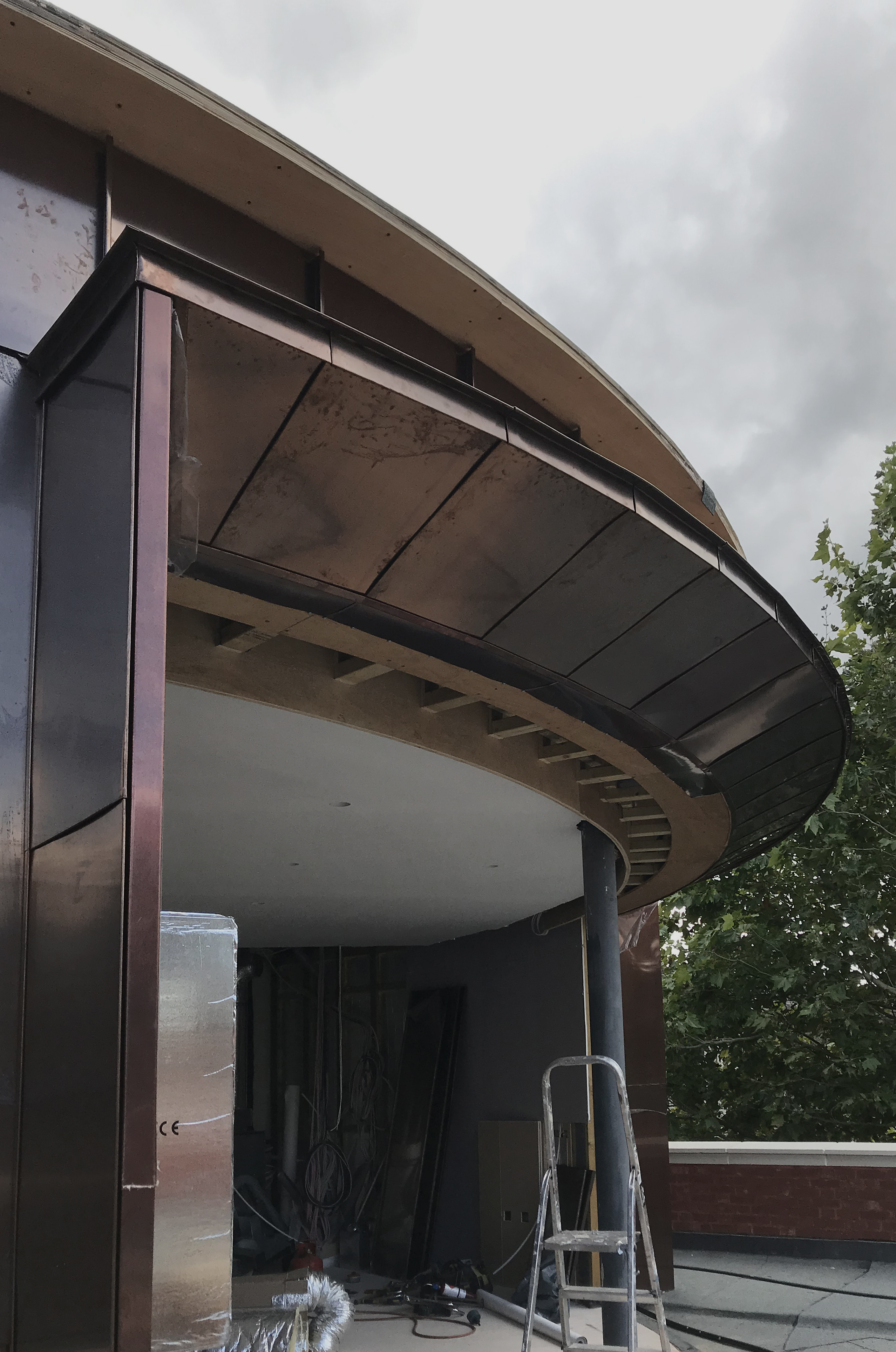 Above, flats are accommodated behind a modern façade. Neighbouring brick structures informed the design of the first floor, which comprises of a continuous band of red brick. Flush mounted windows create deep window seats internally whilst bronze framed recessed windows break up the facade on side elevations. Above, the mass of the second floor is set back from the building edge, minimising the impact of the height and is clad in weathered copper and timber.